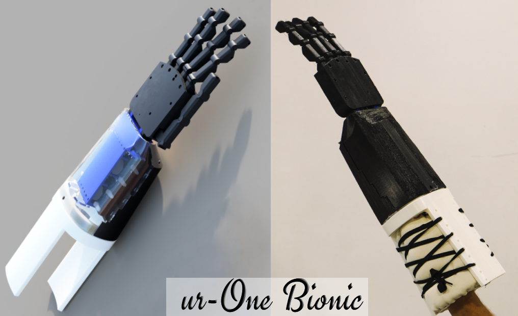 ur-One Bionic machine is prosthetic hand, which gives a second chance to people who lost their hands by creating a prosthetic hand that perfectly fits and satisfies their daily needs, What distinguishes this project is that the information in it will remain open source, easy to fabricate, easy to assemble and cheap. This grants an access to a wide range of people